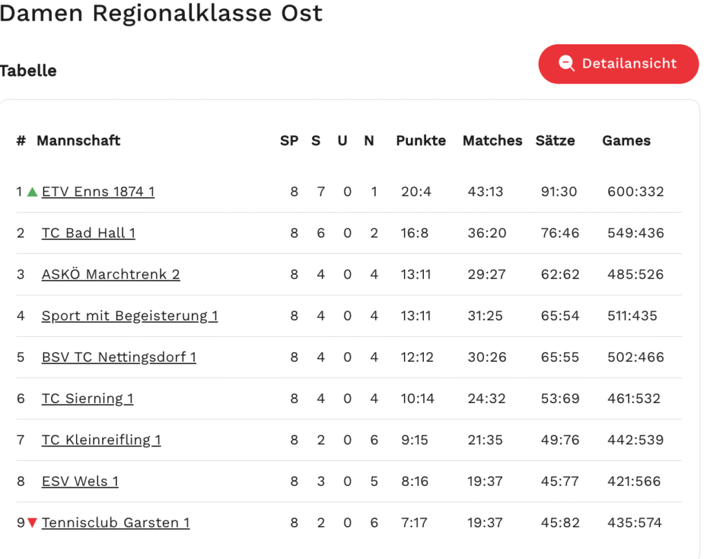 Statistiken Regionalklasse Ost